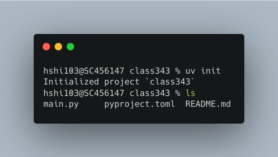 uv initThis single command sets up your project structure. When it finishes, you’ll see that uv has created a few files for you:
