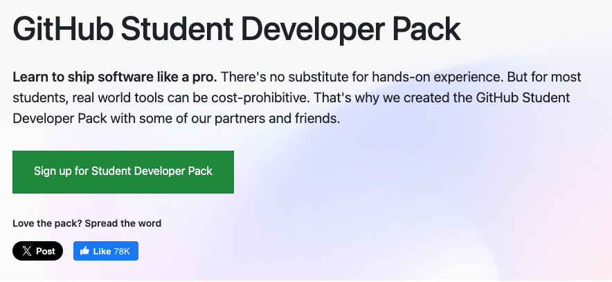 - Click “Sign up for Student Developer Pack”